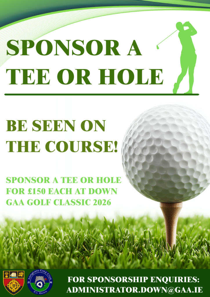 We are inviting you to support the Down GAA Golf Classic 2026 by sponsoring a tee or hole at our upcoming Golf Day, taking place at Ardglass Golf Club on Friday 29th May 2026.